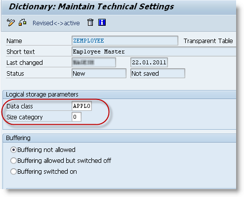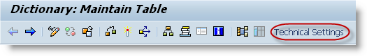 - Maintain the primary key and press save. To maintain the technical attributes of table like tablespace, size etc. press the Technical attributes button on application toolbar.