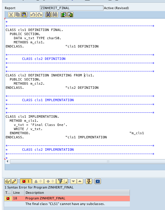 A final class which is another type of class in OOPs concept cannot have any child or sub classes. If we create any sub class of final class then a syntax error will come as follows: