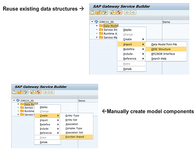 When building the OData model in the Service Builder, you can reuse existing data structures, or manually create model components.