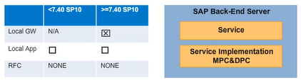 If the Local GW checkbox is selected, no RFC calls are performed. Prior to SAP NW SP10, the runtime performed RFC calls with the RFC destination NONE, which required data to still be parsed even for this (local) RFC call. As of SAP NetWeaver 7.40 SP10, the hub runtime performs local calls to the classes of the back-end framework instead.