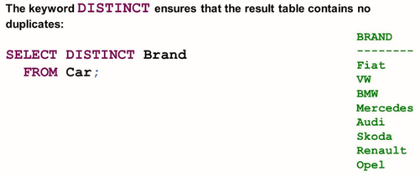 If a projection list contains multiple columns, DISTINCT always refers to the combination of all these columns.