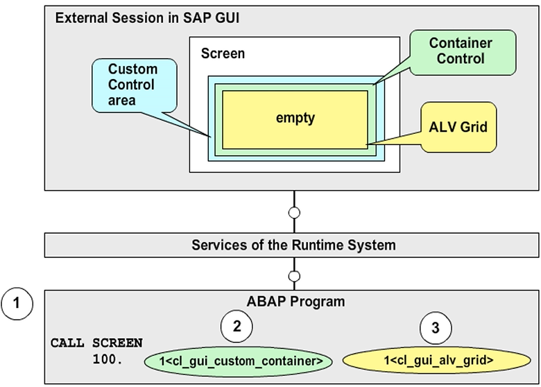 The procedure to create an instance of the ALV Grid is similar to the container control instance.