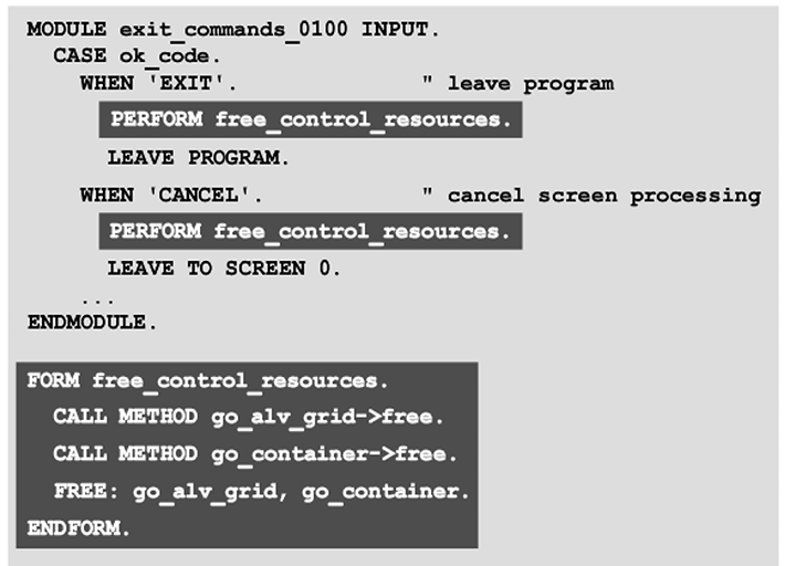 Every control wrapper has this free method (inherited from CL_GUI_OBJECT). Call this method in every case in which the presentation server controls are no longer required in the course of your program.