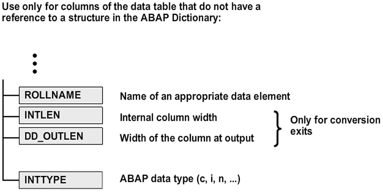 If you have not filled the ref_field or the ref_table field, there is no adequate reference to the ABAP Dictionary. In this case, the fields allow you to format the relevant columns for output.