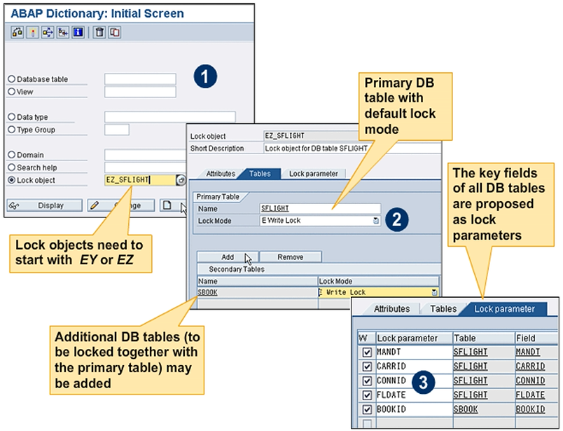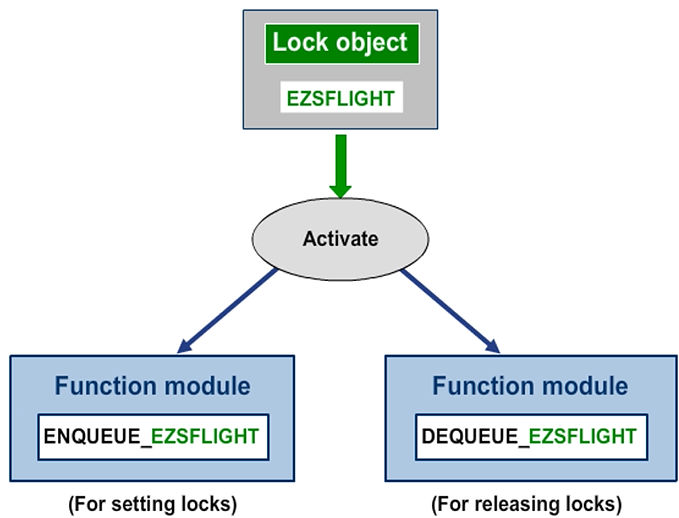 When a lock object is successfully activated, the system automatically generates two lock modules: one for setting locks for entries in the table(s) specified in the lock object, and one for releasing these locks.
