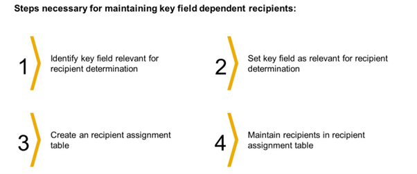 For example, you have two company codes 1000 and 2000. RECIPIENT_1 is responsible for company code 1000 and RECIPIENT_2 is responsible for company code 2000. Then, you have to maintain an entry for both recipients in your table.