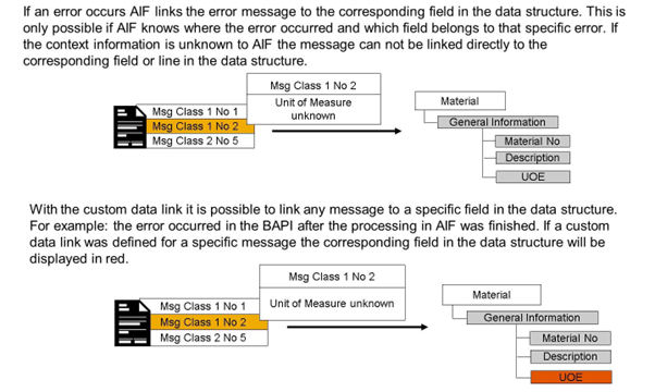 The configuration dialog to define custom data links can be found in Define Custom Data Links (or via transaction code /AIF/CUST_LINK).