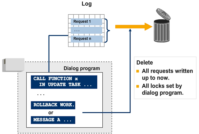 Sometimes all change requests that were written till now for the current SAP LUW may need to be discarded from within the dialog program. Such is the case, for example, when you terminate the transaction.