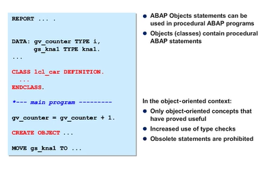 ABAP Objects is not a new language, but it was designed as a systematic extension of ABAP. All of the extensions, including the old procedural parts, are upward compatible.