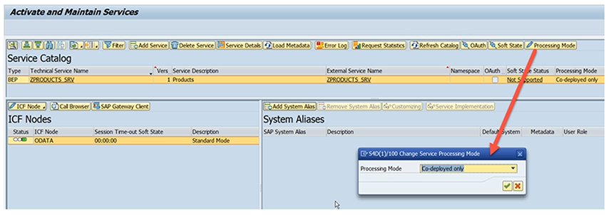 Their settings in /IWFND/MAINT_SERVICE have to be changed such that the co-deployment is used. For this, you have to remove the system alias assignments in the back end using transaction /n/IWFND/MAINT_SERVICES and you have to switch the processing mode to co-deployed.