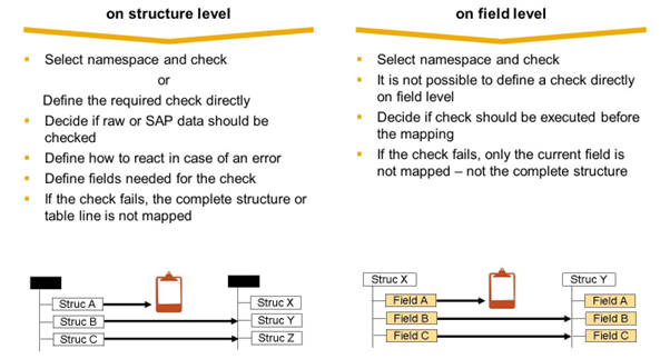 You are required to specify which data structure should be checked. This can be the raw or SAP structure. You also need to define the behavior of the check in case of an error. There are two options: