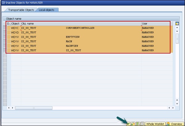 Step 4 − Double-click on the component ZZ_00_TEST and click Activate.