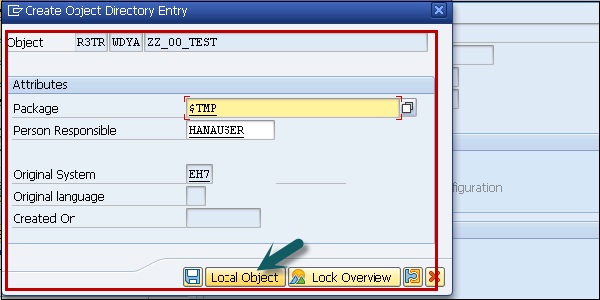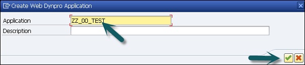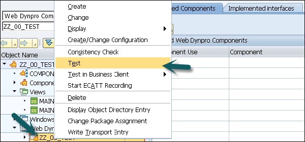 Step 1 − Select the ZZ_00_TEST component in the object tree → right-click and create a new application.