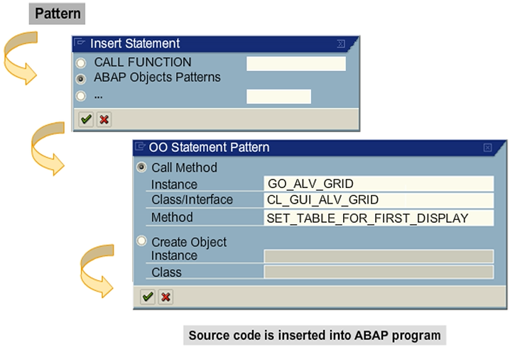 To create the CALL METHOD statement with the ABAP Objects pattern, perform the following steps: