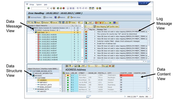 The Monitoring and Error Handling transaction enables the user to analyze errors, correct errors, and restart or cancel messages.