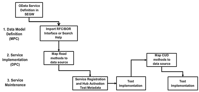 The service implementation is performed by mapping the different methods of the RFC function module to the respective OData operation of an entity set.
