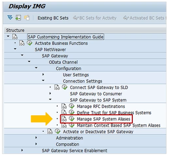 GatewayOData ChannelConfigurationConnection SettingsSAP NetWeaverSAP GatewayManage SAP System Alias (transaction SPRO).