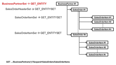 In our example, $expand is used to either retrieve all sales orders of a business partner or all items of a sales order. Alternatively, it can be used, for example, to retrieve all sales orders including all their items of a business partner.