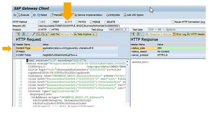 The SAP Gateway client automatically fetches a token and sends it along with an update request as shown in the figure.