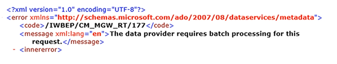 When activated for certain services/entities, read access is forced to use $batch for security reasons.