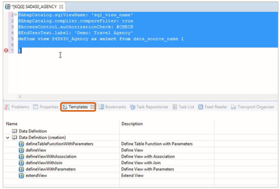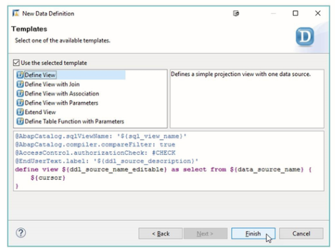 Usually, a respective dialog appears after you assigned the new DDL source to your ABAP workbench request. But you can always return to the template selection later in the editing process.