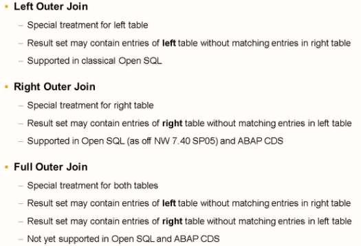 SQL Supports a large variety of join types. Only inner joins are supported in classical database views in ABAP Dictionary.
