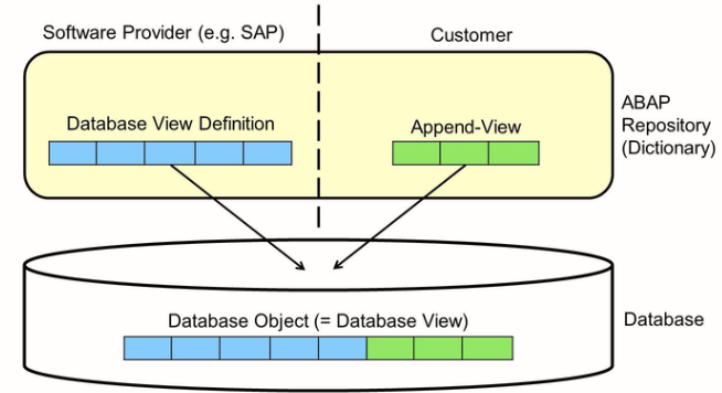 The database view delivered by SAP can be enhanced by partners and customers using views known as append views, without making any modifications.