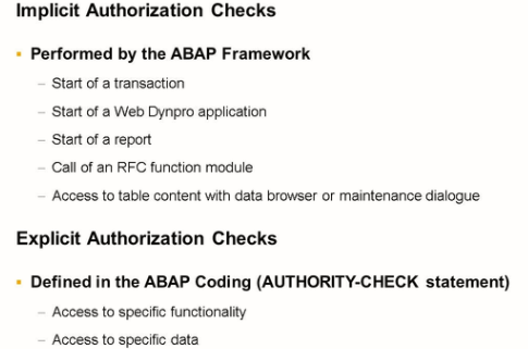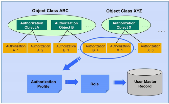 In ABAP systems, all authorizations are based on a special repository object called Authorization object. Authorization is defined in authorization profiles which are then assigned to users.