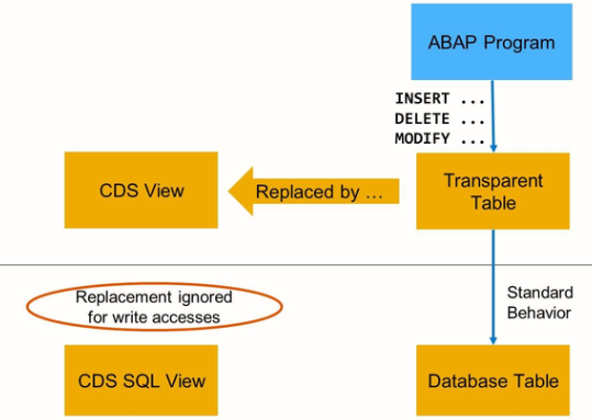 If a replacement object has been assigned, any read access via Open SQL statement SELECT will be redirected to the replacement object.