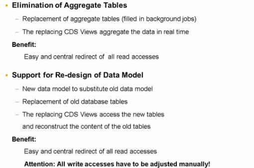 If you define a replacement object for the first time, the system checks whether the specified CDS view meets the perquisites. If a CDS view used as a replacement object is changed later and the perquisites are no longer met, a runtime error DBSQL_REDIRECT_INCONSISTENCY occurs.
