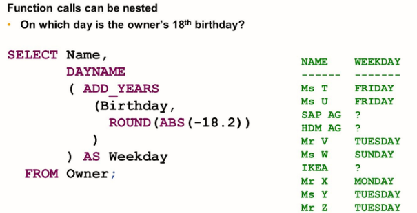 SAP HANA supports using functions to calculate columns of the projection list. Different functions are available for different data types of the input columns and values.
