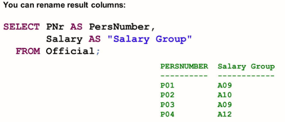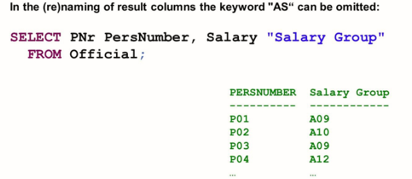 The column names of the result set can differ from the column names in the table selected from. In other words, you can “rename” result columns.