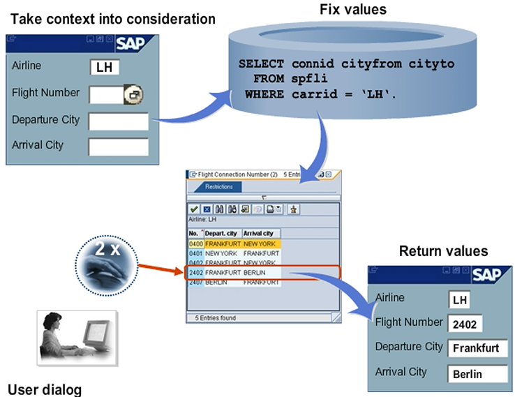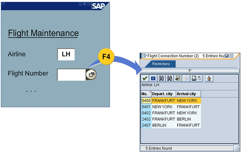 As the input help is a standard function, it looks and behaves the same throughout the entire SAP system. The development environment, therefore, provides tools for attaching a standardized input help to a screen field.