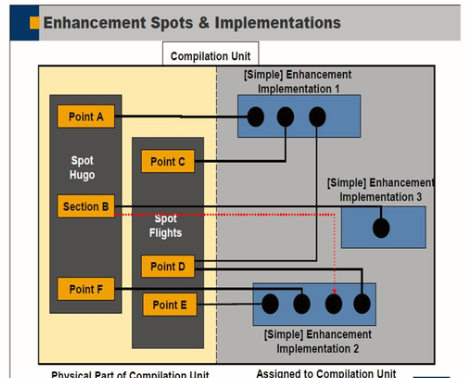 It is possible to have one or more implementation for an enhancement point, belonging to different enhancement implementations. For example, Point D has an enhancement implementation in both enhancement implementation 1 and enhancement implementation 2.