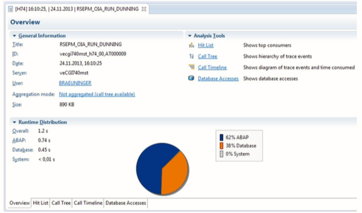 One of the tools to perform such a runtime analysis in the classical SAP GUI is the ABAP Trace (Tcode SAT), which replaces the older Runtime Analysis(SE30).
