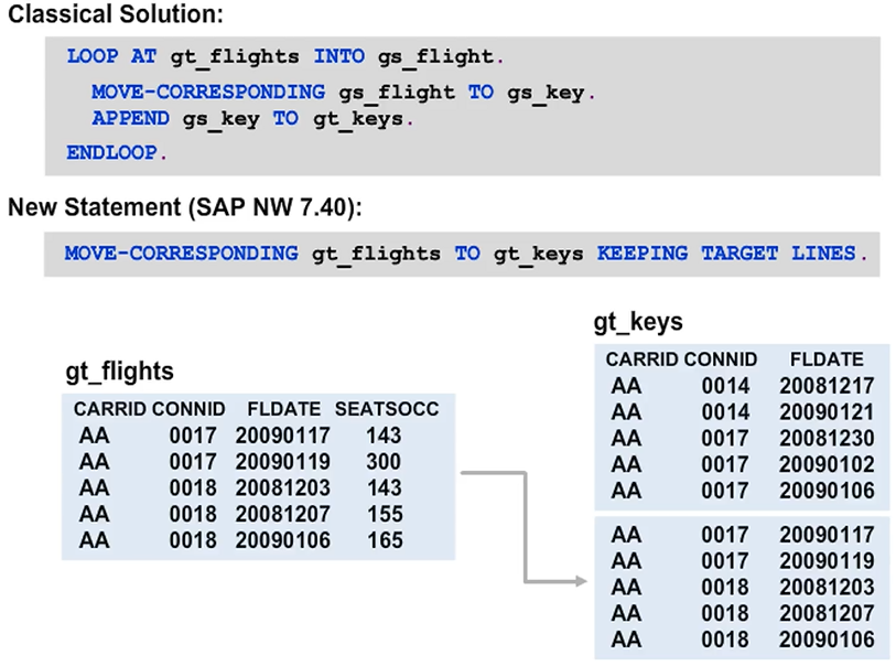 MOVE-CORRESPONDING with KEEPING TARGET LINES Addition
