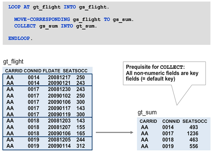 The COLLECT statement is a special technique for filling an internal table. The runtime environment aggregates the table already during the insert operation.