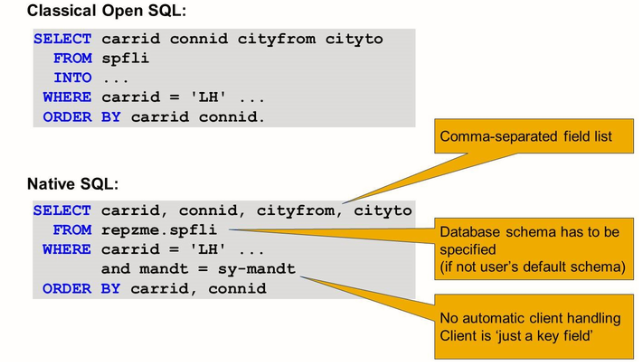 Native SQL and Open SQL