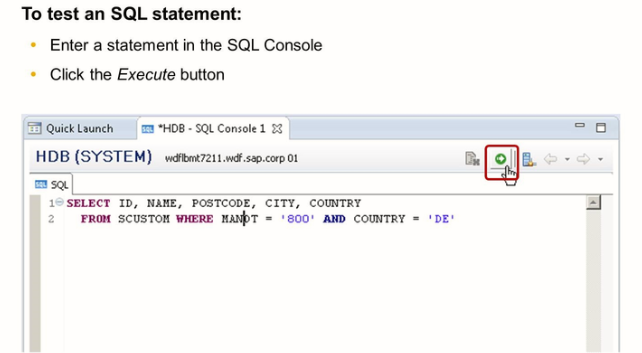 Native SQL statement Testing in the SAP HANA Studio