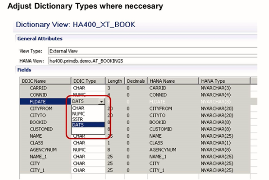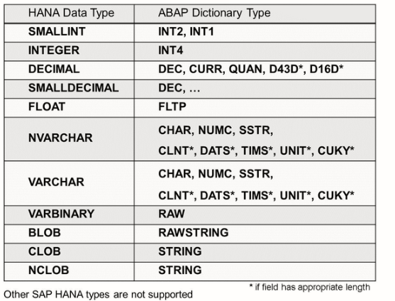 Adjust the mapping from the SAP HANA types used in the SAP HANA column view to the ABAP types used in the ABAP representation.