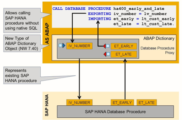 A database procedure proxy allows you to call the database procedure it represents without using Native SQL. A new ABAP statement CALL DATABASE PROCEDURE is introduced for this purpose.