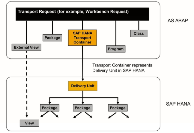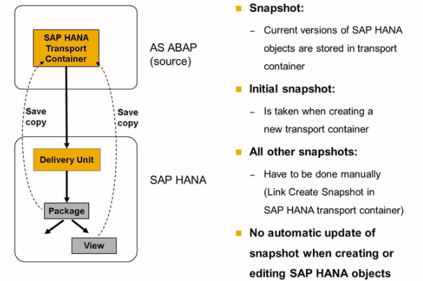 When you create an SAP HANA Transport Container, you take a snapshot of the full content of the corresponding SAP HANA delivery unit and store a copy of it in the ABAP transport request.