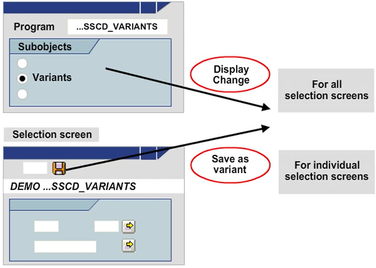 If the program uses several selection screens, a variant can be created for all selection screens, or individually for each selection screen.