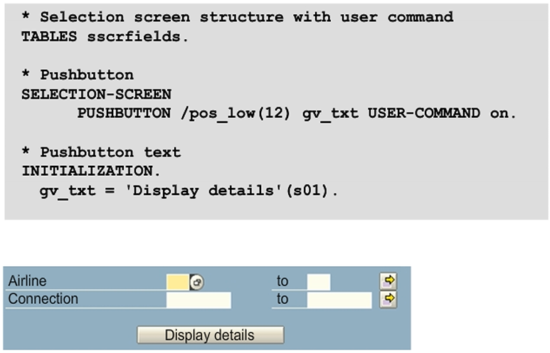 To generate buttons on a selection screen, you use the SELECTION-SCREEN PUSHBUTTON statement.