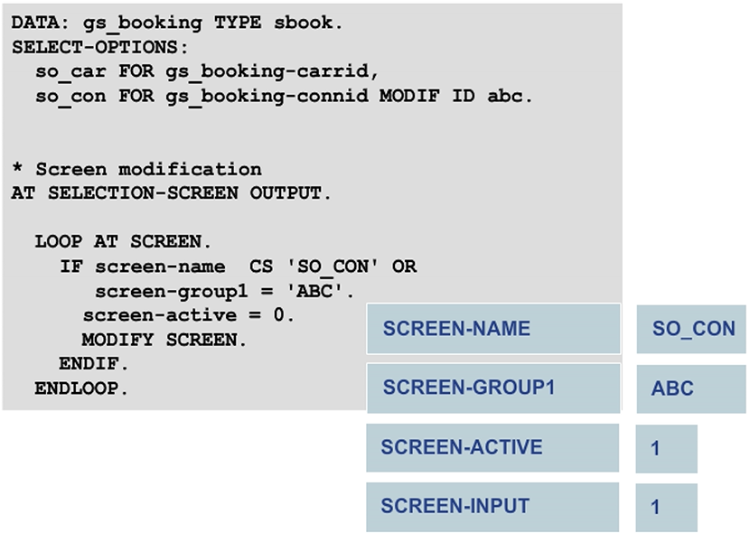 Each field of the selection screen has an entry in the SCREEN system table. You can change the contents of this table at runtime.