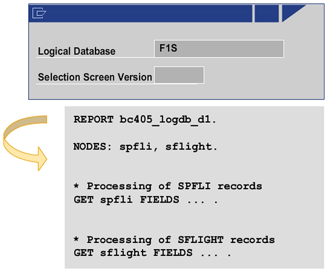 When the logical database reads the data records, it uses the PUT <node> keyword that triggers the GET <node> event in the report program.