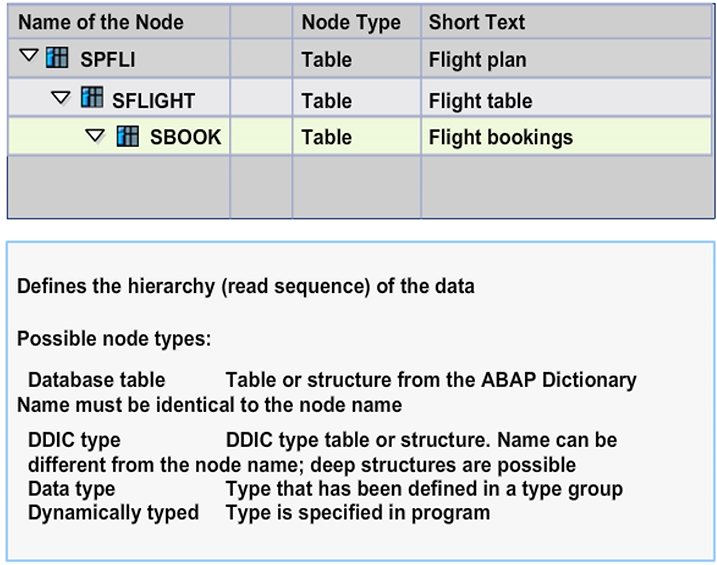 Use the NODES <nodes> statement to specify the nodes of the logical database that you want to use in the program. The NODES statement creates a structure corresponding to the node type.