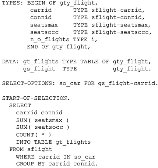 When you use INTO CORRESPONDING FIELDS in the SELECT statement, ensure that each aggregate function from the SELECT clause corresponds with an identically named field in the target structure or internal table. You can do this by assigning alias names to the aggregate functions using the AS addition in the column list.