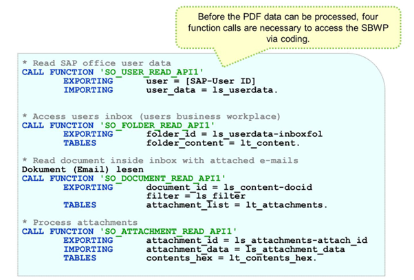 Function call SO_ATTACHMENT_READ_API accesses e-mail attachments.