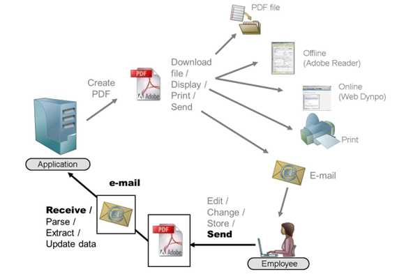 The recipient can access his or her business workplace (transaction SBWP) with the incoming mails and PDF attachments.
